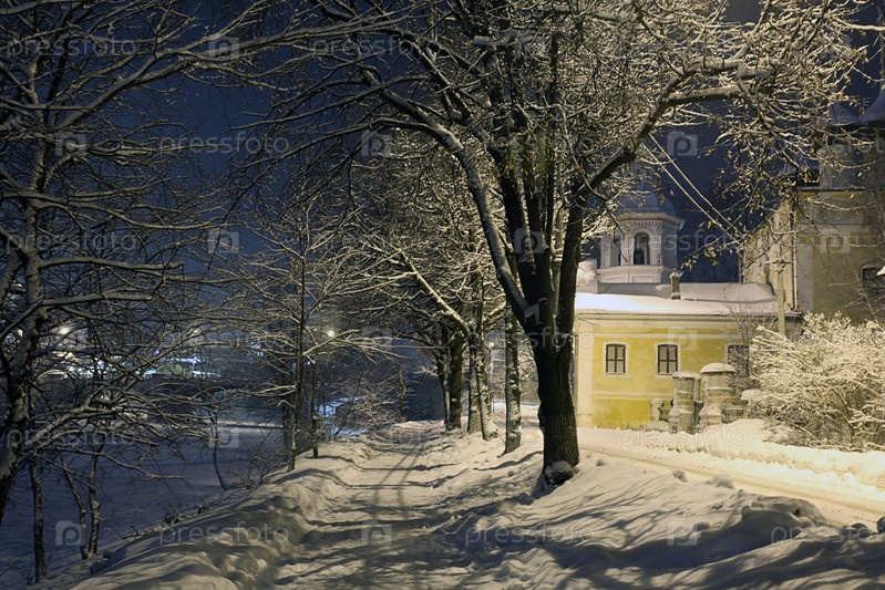 Ночной Зимний пейзаж в городе