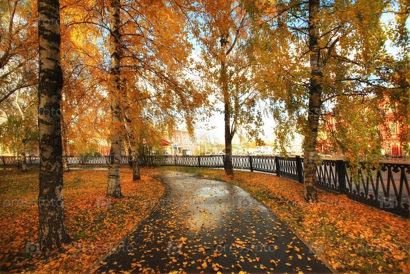 Осенний парк с желтыми листьями