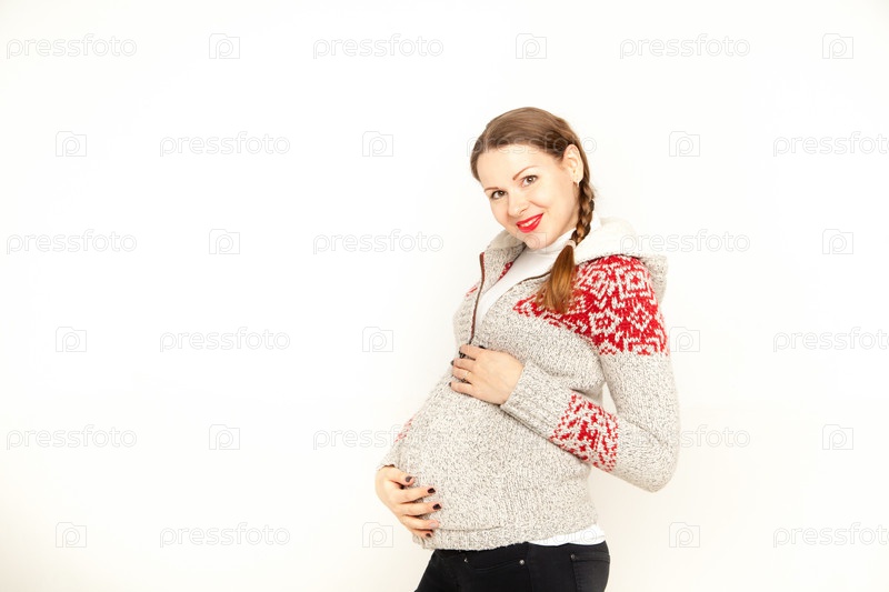 Счастливая беременная женщина в зимней одежде