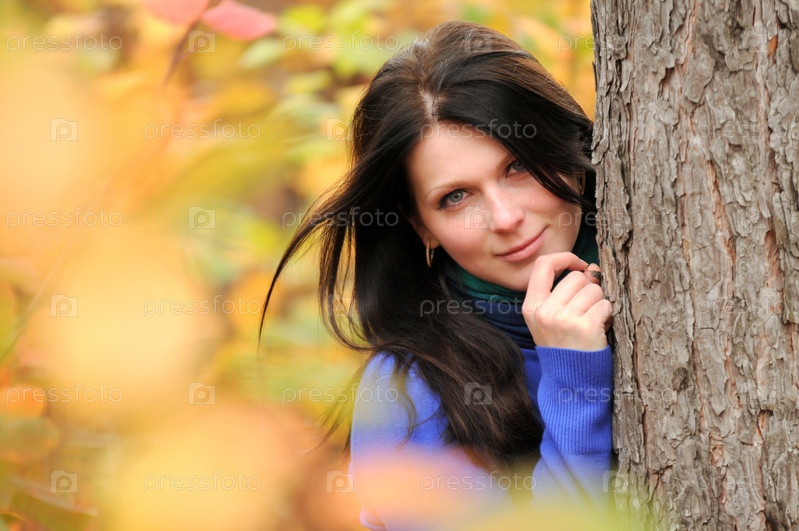 Молодая женщина в осеннем лесу
