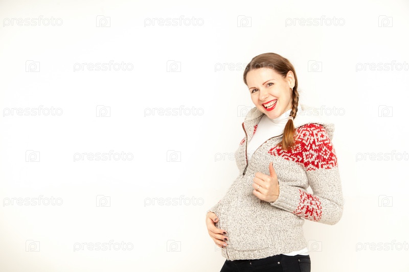 Счастливая беременная женщина в зимней одежде