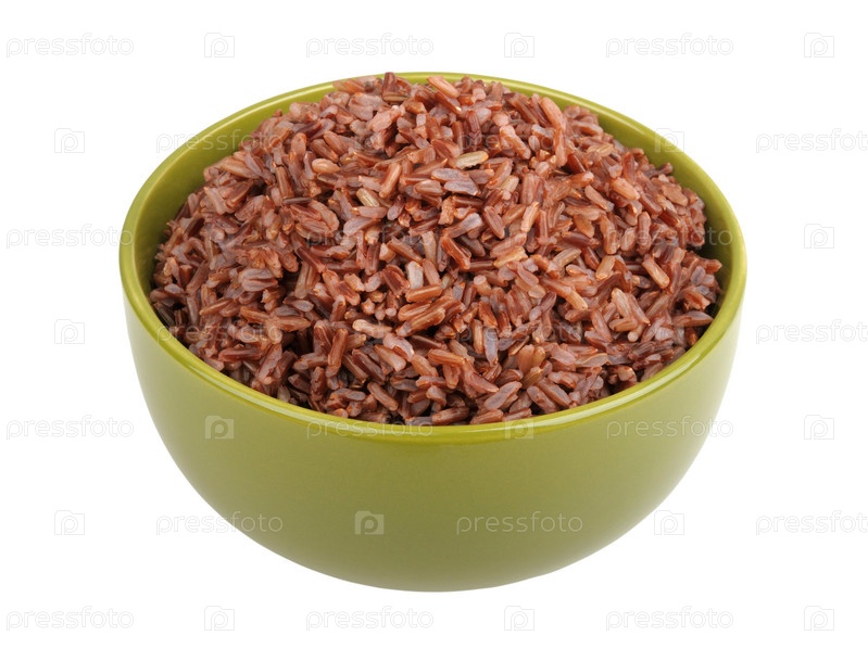 Красный рис в тарелке на белом фоне