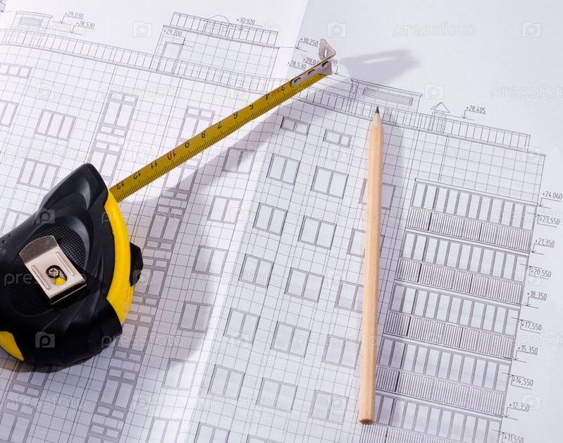 План новостройки, карандаш и рулетка