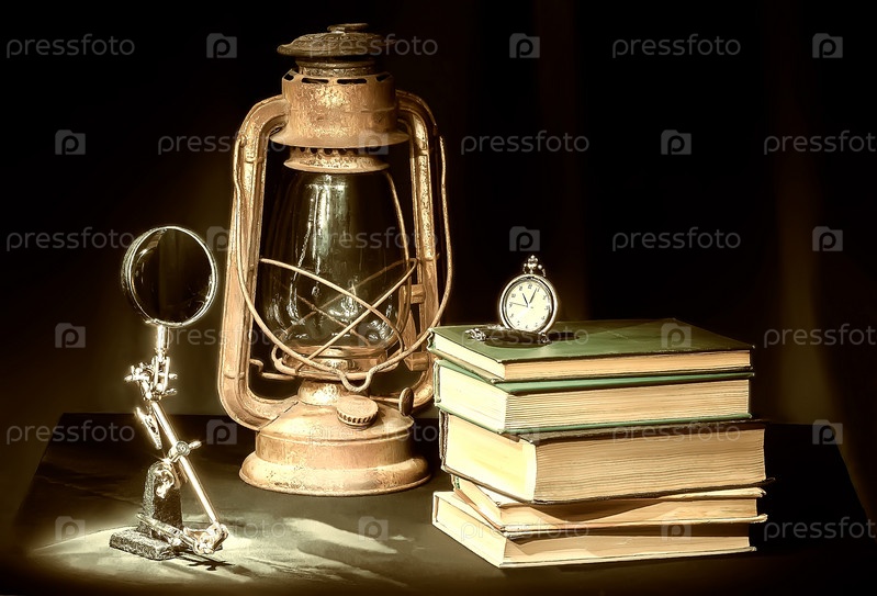 Натюрморт с книгами и керосиновой лампой
