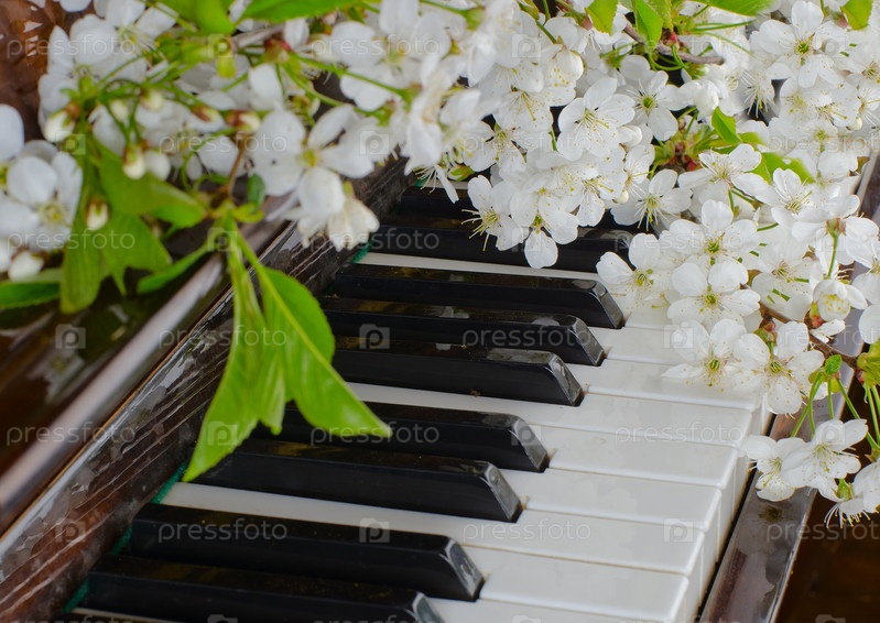 Цветущая вишня на фортепиано