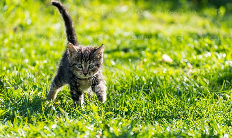 Полосатый котенок на открытом воздухе