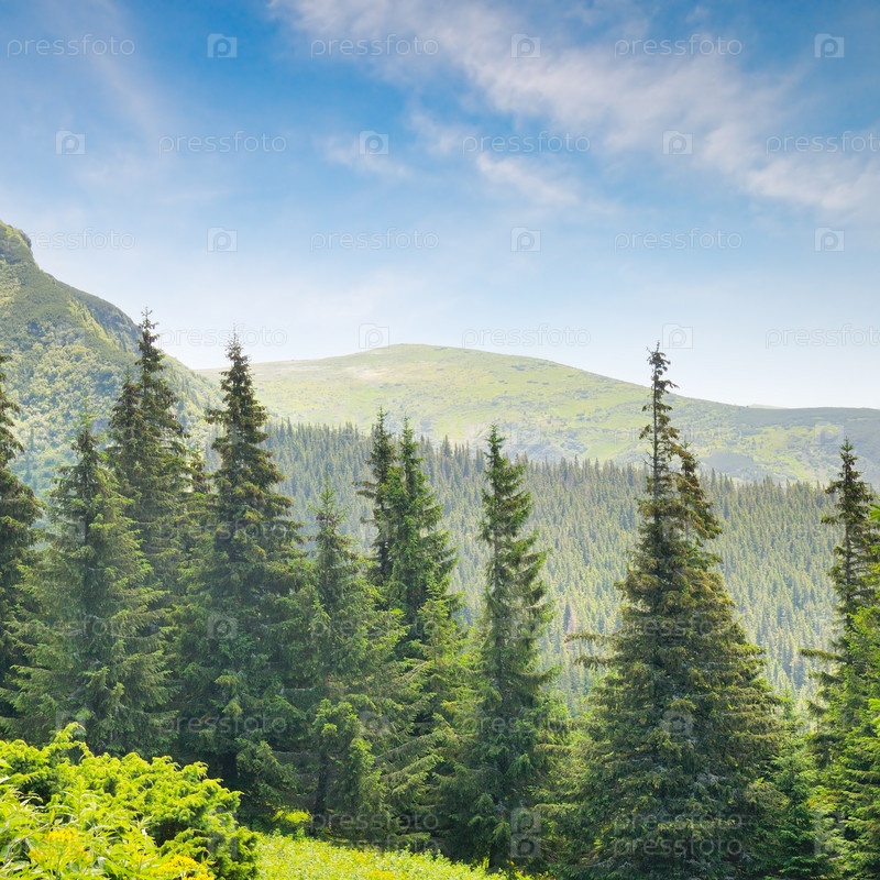Еловый лес на холме