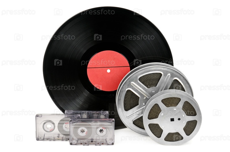 Аудио кассеты, виниловая пластинка и видеопленки