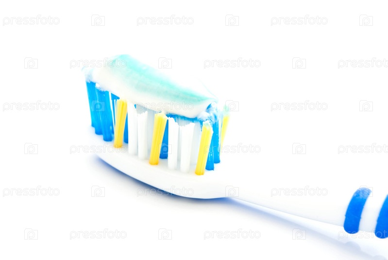 Голубая зубная щетка с пастой