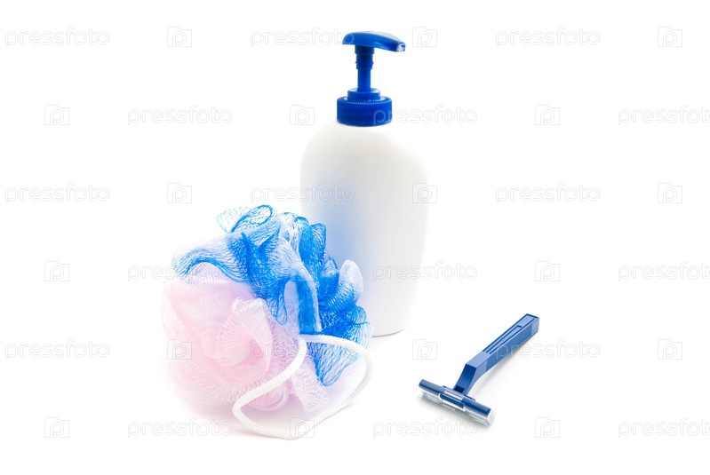 Гель, мочалка и бритва
