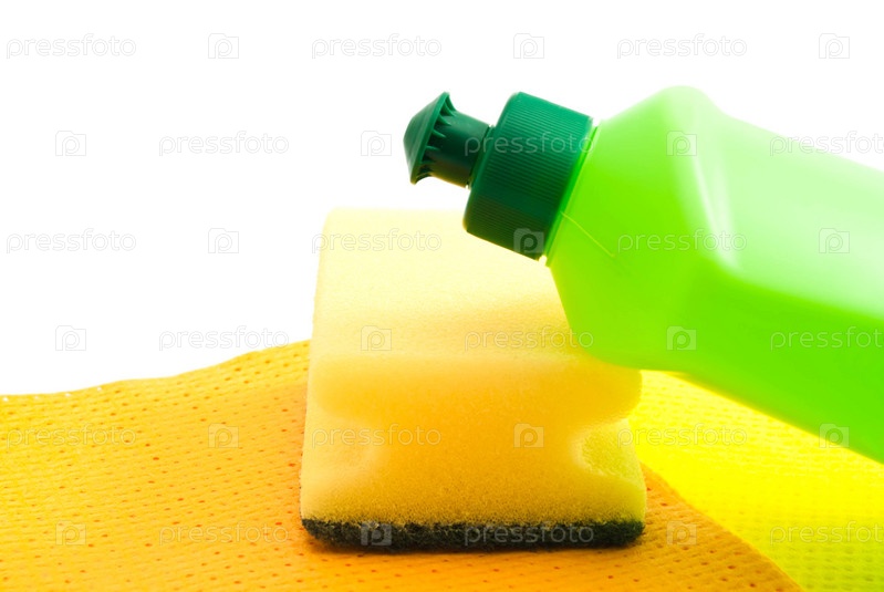 Зеленая бутылка, тряпки и Губка