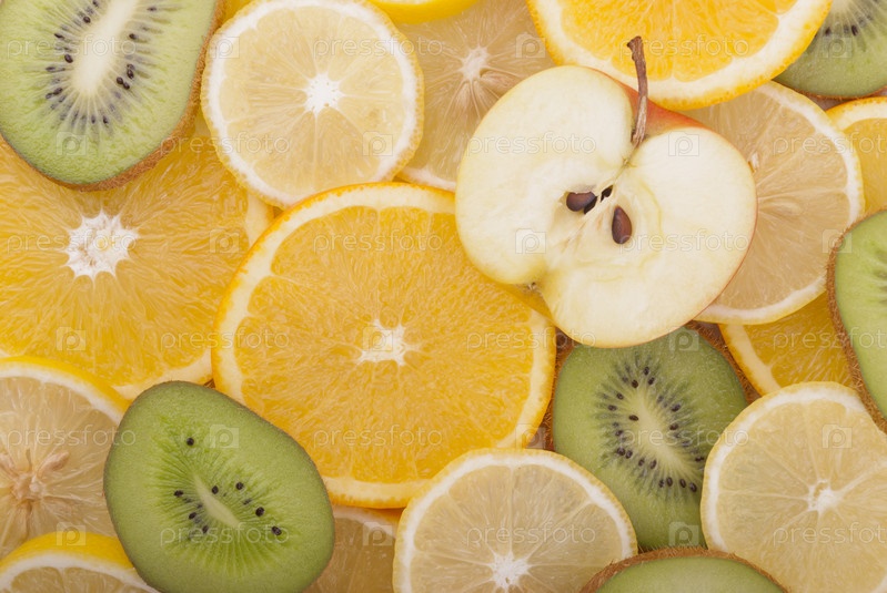 Ломтики различных нарезанных фруктов