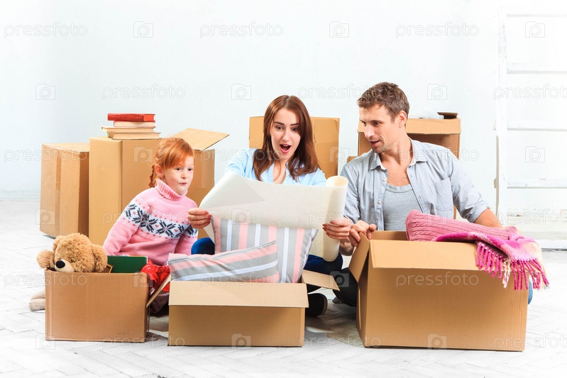 Счастливая семья в новой квартире