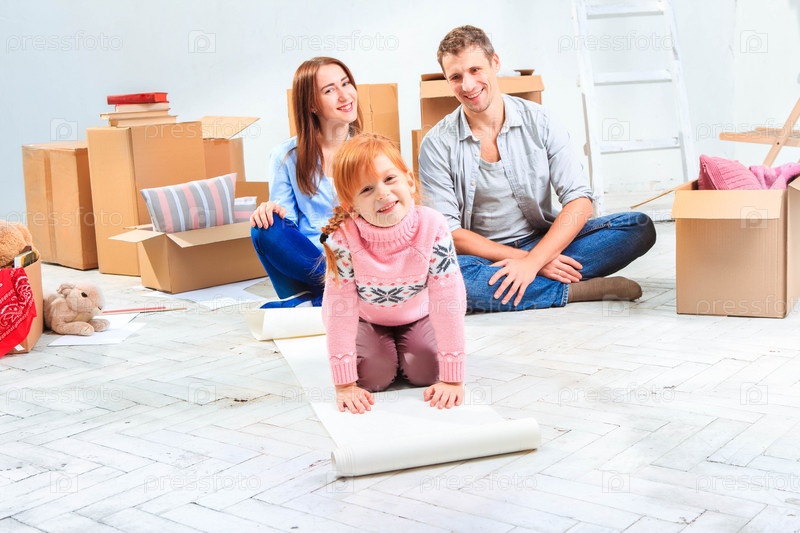 Счастливая семья в новой квартире