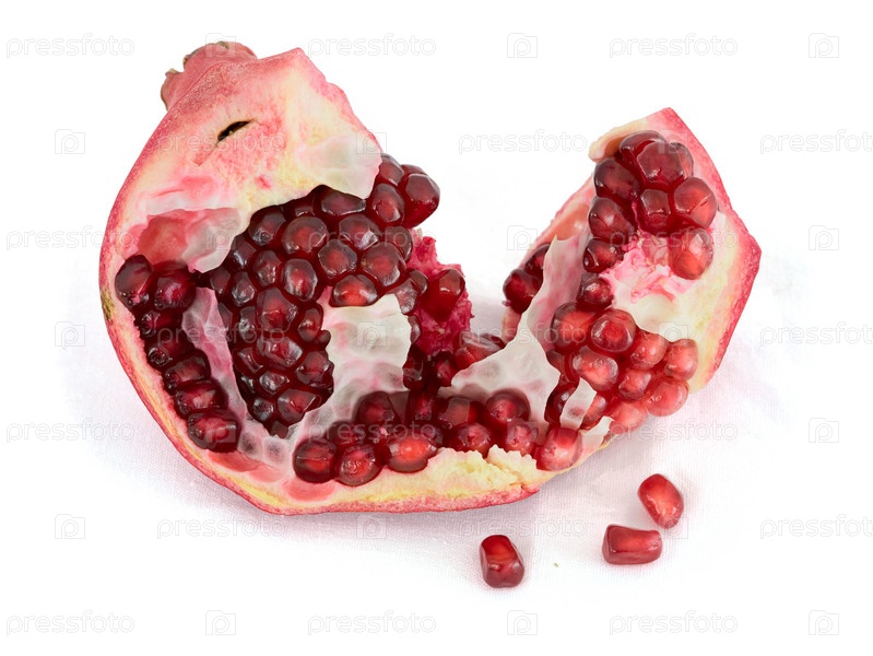 Красный спелый гранат на белом фоне