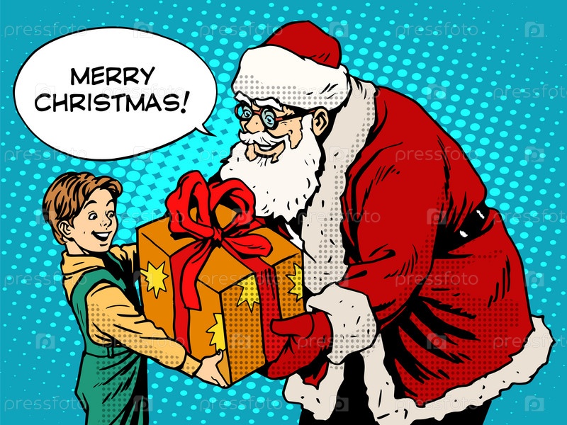 Санта Клаус дарит мальчику подарок