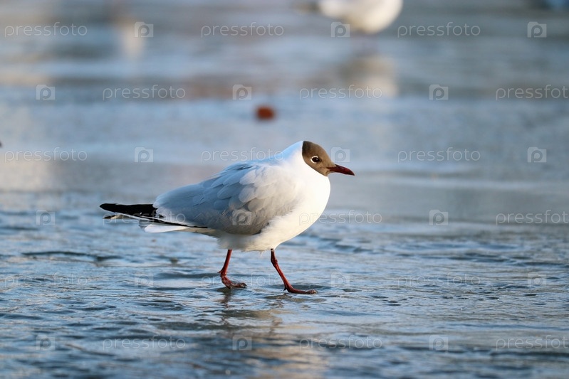 Белая чайка на льду