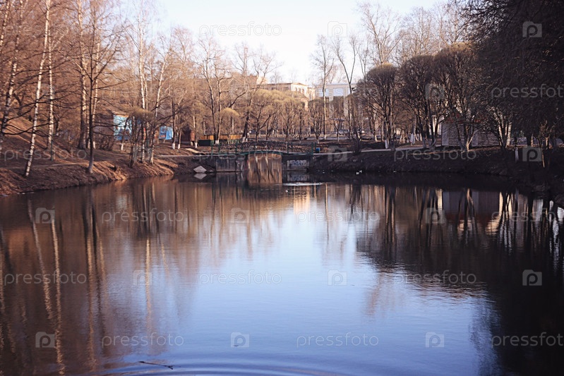 Весенний парк и пруд