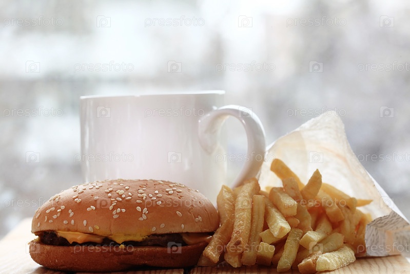 Чизбургер и картофель фри