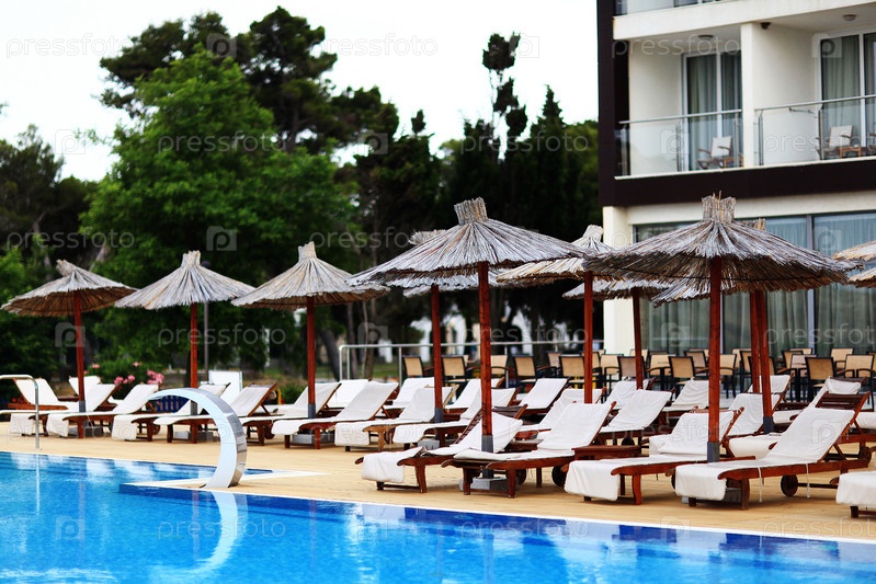 Зонты пляжные в шезлонгах отеля