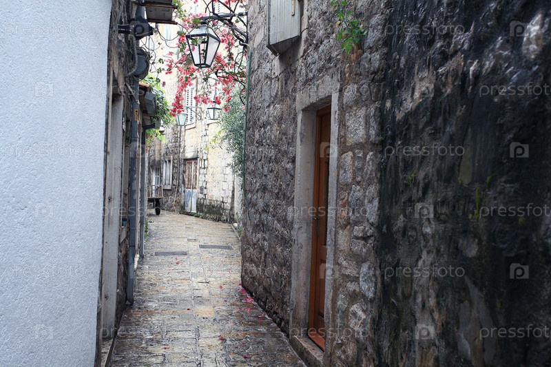 Мощеная улица каменные стены Европы