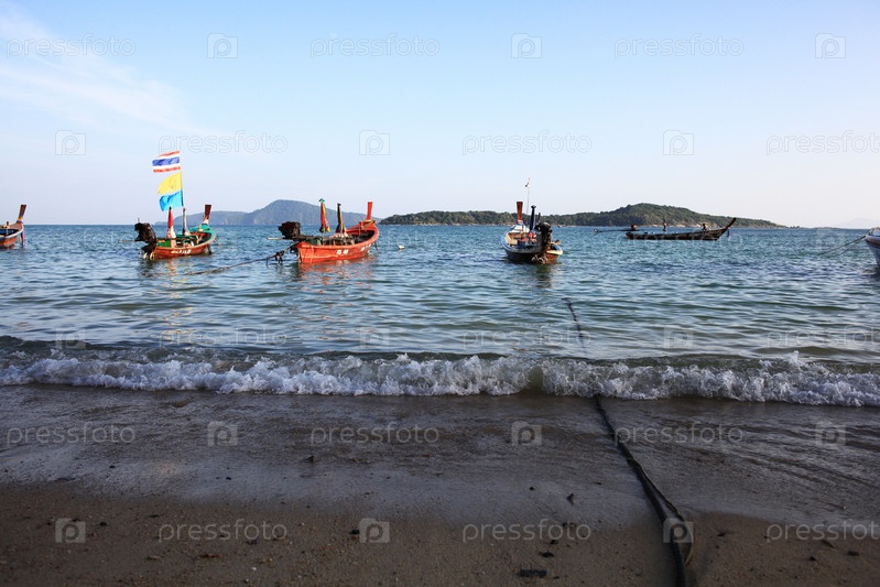 Пейзаж залива море лодке приключенческий туризм Таиланд
