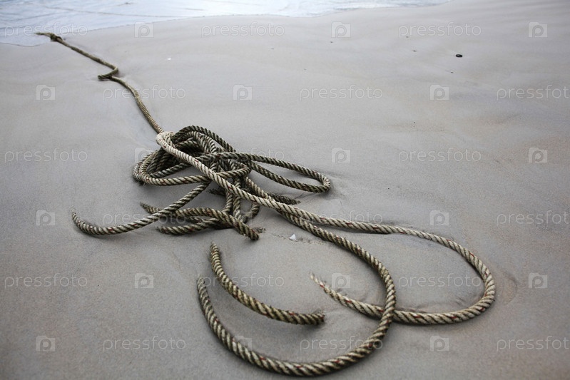 Веревка в песке на берегу моря