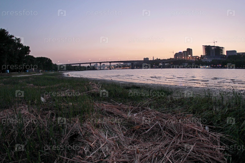 Берег реки с городом на другом берегу