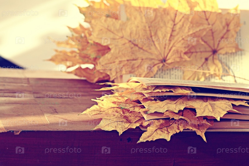 Осенние листья между книжных страниц