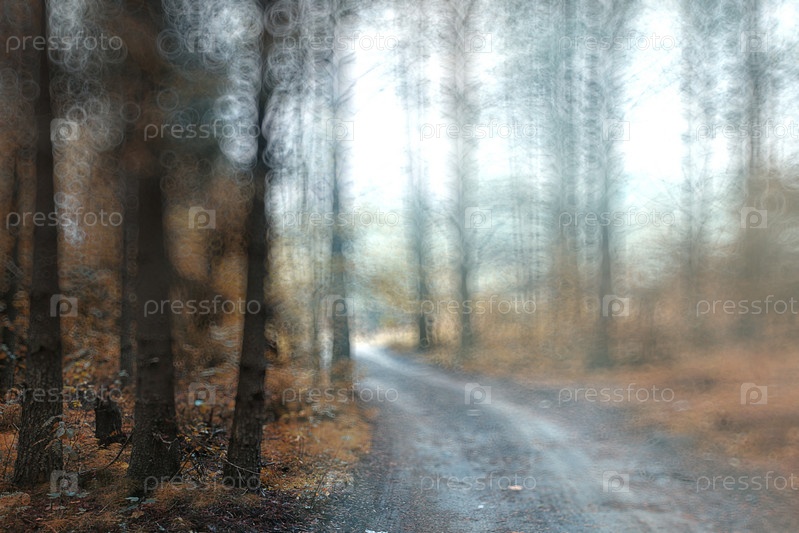 Осенний лес размытый фон с желтыми листьями