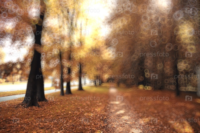 Размытый фон деревья в осенний городской парк