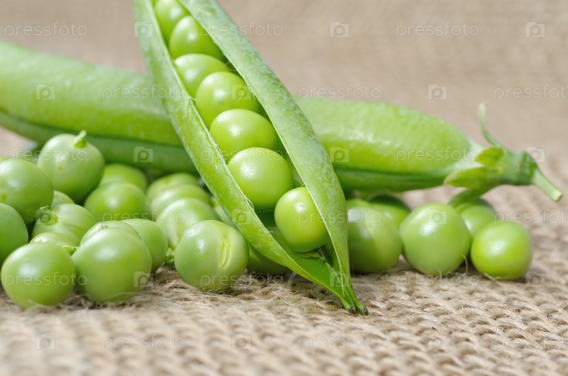 Зеленый горошек на мешковине