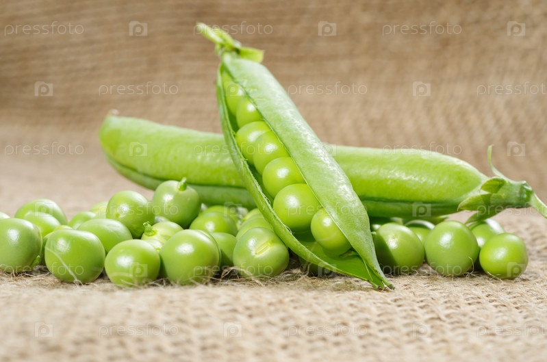 Зеленый горошек на мешковине