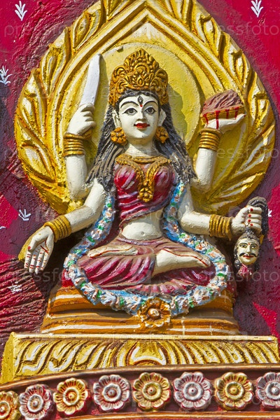 Богиня на стене храма Кали в Пури