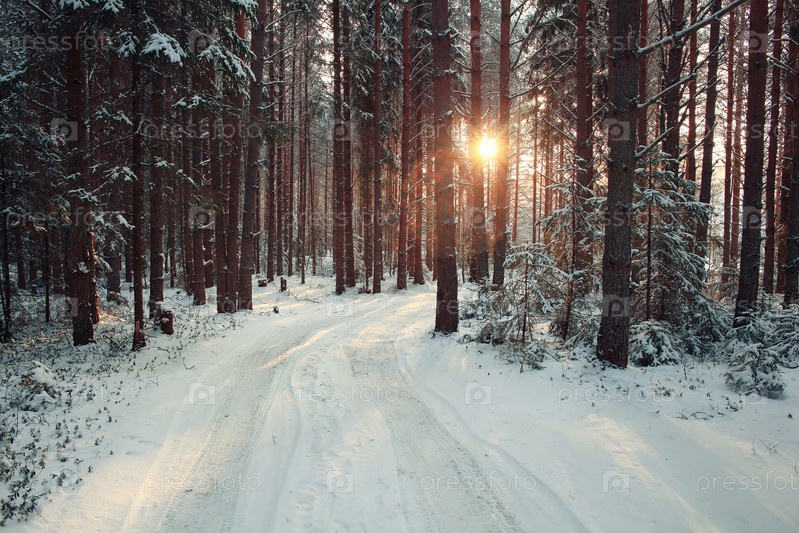 Зимний пейзаж в снежном лесу