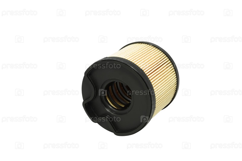 Автомобильный топливный фильтр расположен на изолированном белом фоне