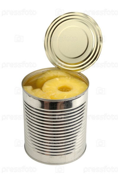 Консервированные ананасы на белом фоне