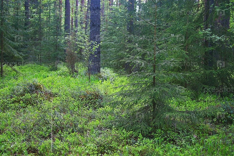 Летом еловый лесной пейзаж