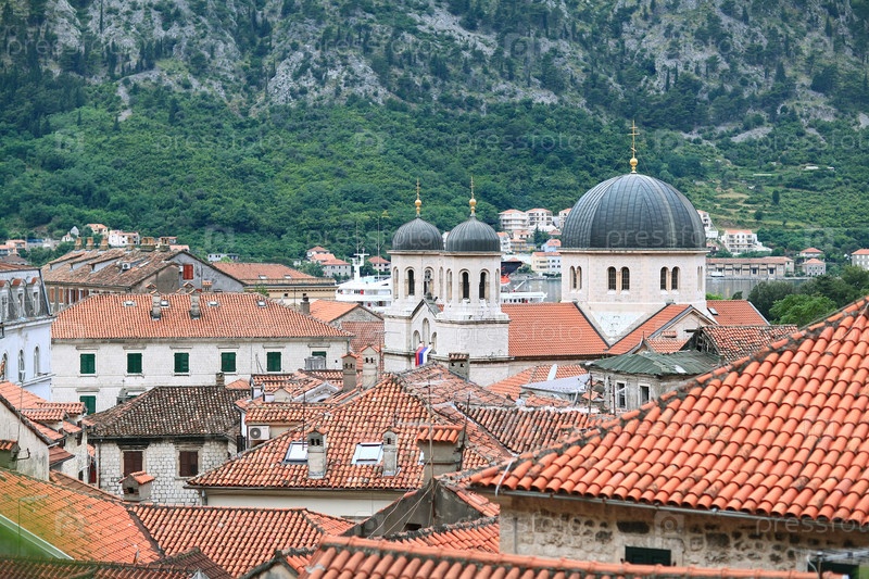 Красные крыши здания Европейский город на побережье