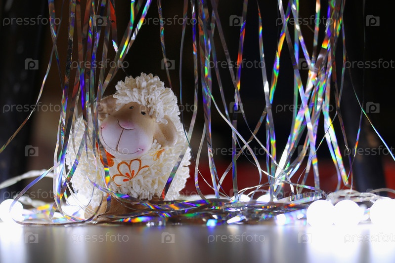 Игрушка ягненка серпантином блестящий новый год