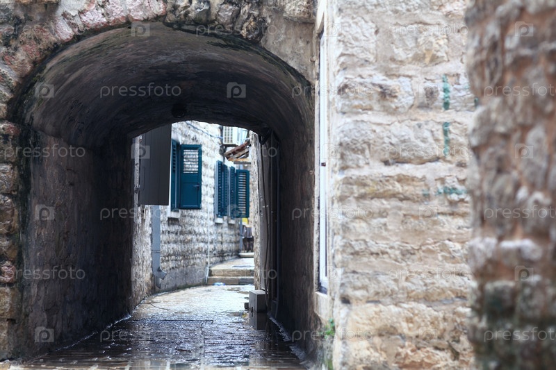 Мощеная улица каменные стены Европы