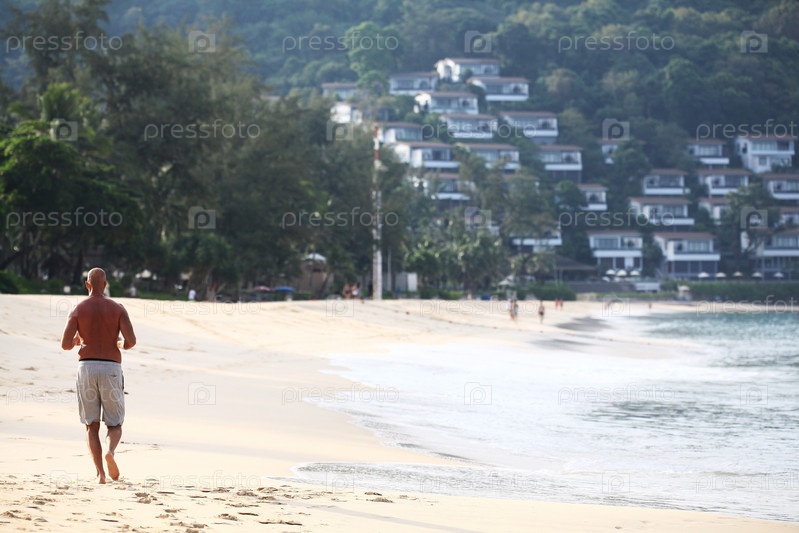 Пейзаж человек бегает на пляже