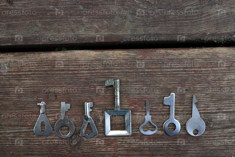 Ключи замков деревянными фоне