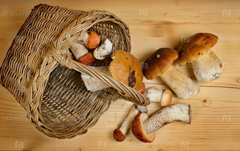 Корзина с съедобный гриб