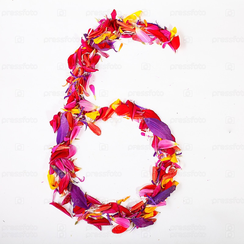 Цифра, выложенная лепестками цветов