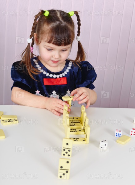 Малышка играет в домино