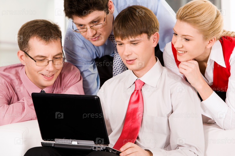 Портрет уверенных в себе деловых людей, которые смотрят на ноутбук