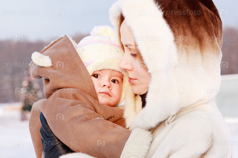 Женщина с младенцем зимой на улице