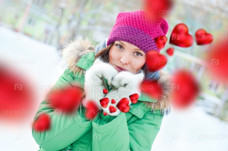 Влюбленная девушка зимой на открытом воздухе