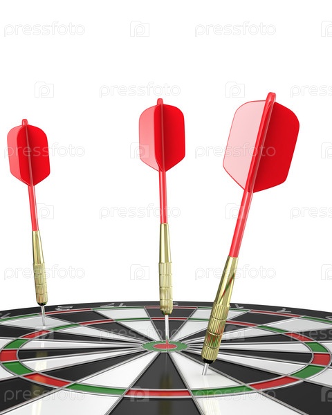 Дротики в мишени на белом фоне